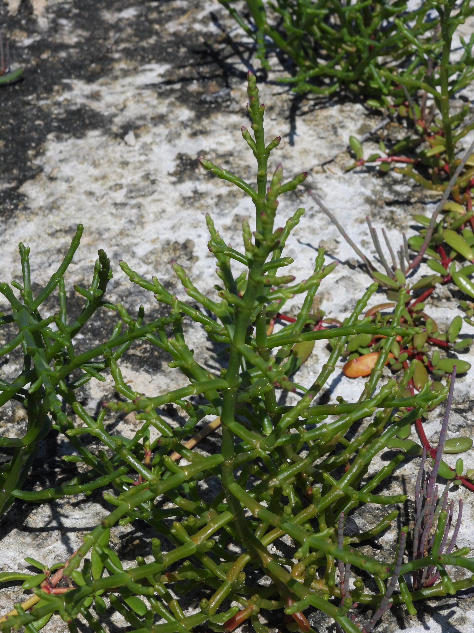 Habitat: Salicornia bigelovii grows in saline areas along the coast or edges of mangrove and saline flats.
